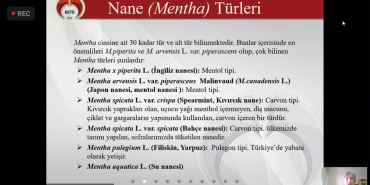 Tarım ve Doğa Bilimleri Fakültesi Bitkisel Üretim ve Teknolojileri Bölümü öğretim üyemiz Prof. Dr. Menşure Özgüven, 16-17 Aralık 2020 tarihlerinde Tarım ve Orman Bakanlığımızca çevrimiçi ortamda düzenlenen “IV. Tıbbi ve Aromatik Bitkiler Çalıştayı” na davet edilmiş ve "Katma Değeri Yüksek Yeni Bir Nane Çeşidi ve Lavanta Pazarı ile Lavanta Çalışmaları" konulu bir sunum yapmıştır.